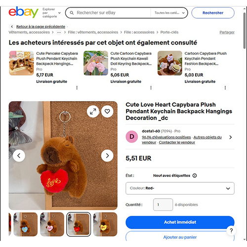 Cute Love Heart Capybara Plush Pendant Keychain Backpack Hangings Decoration _dc Jouet doux de marmotte vibrante, activé par un cordon rétractable automatique, avec un cœur rembourré à la fin. Produit vendu en ligne, notamment via eBay (identifiant unique: 236074801379). -